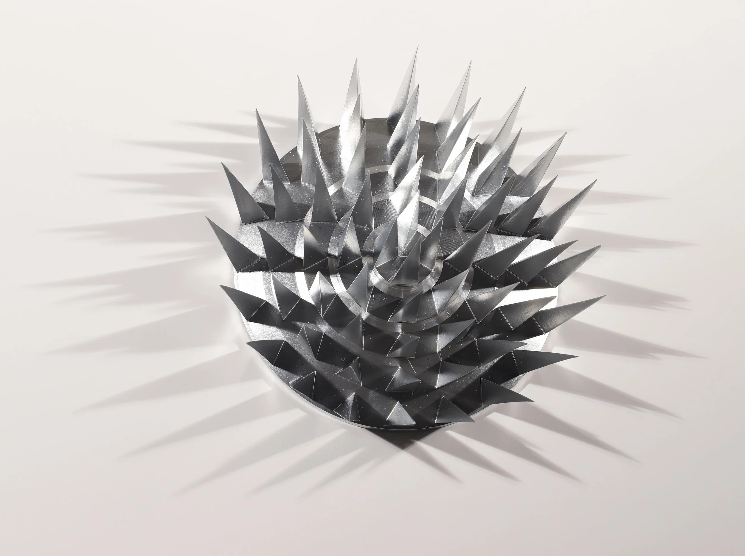 Spikes 1, 2026, resin and enamel, 12” in diameter, depth of 6”